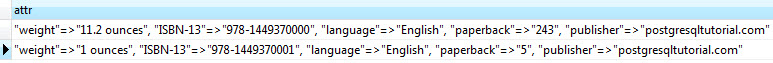 operator to query the value of a specific key from an hstore column. For example, if we want to know ISBN-13 of all available books in the books
